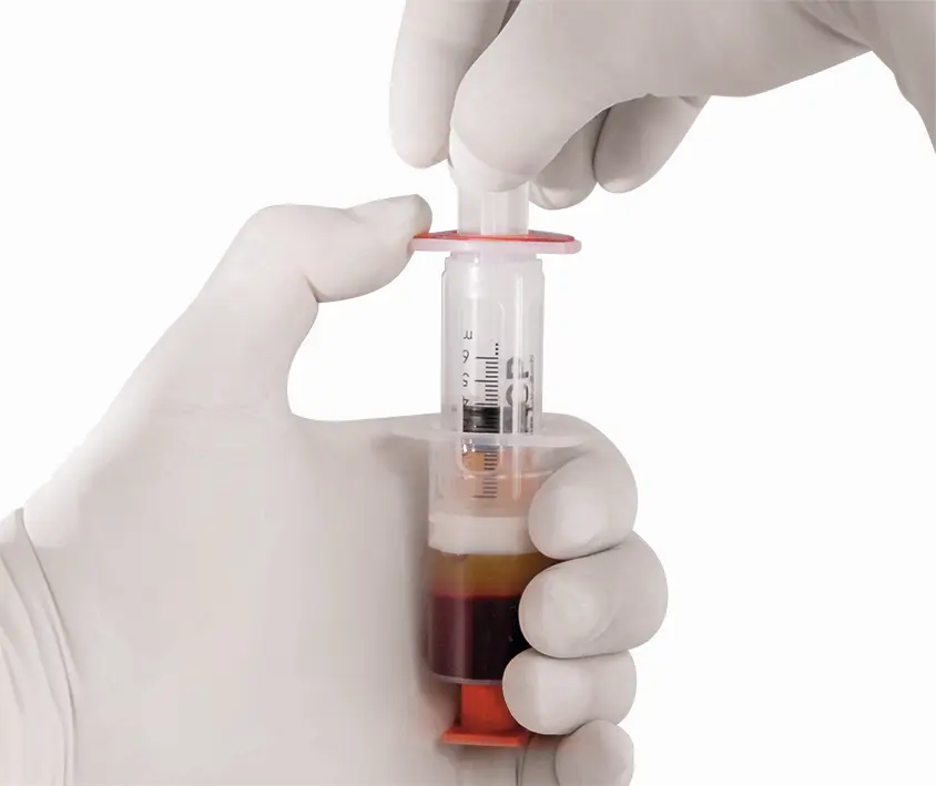 Eine kleine Menge Blut wird aus der Armvene entnommen und durch ein spezielles Trennverfahren jener Teil davon extrahiert, der die regenerationsfördernden und entzündungshemmenden Bestandteile enthält. Diese Lösung wird im Anschluss in das von der Arthrose geschädigte Gelenk injiziert, wo es seine heilenden Wirkungen entfalten kann.